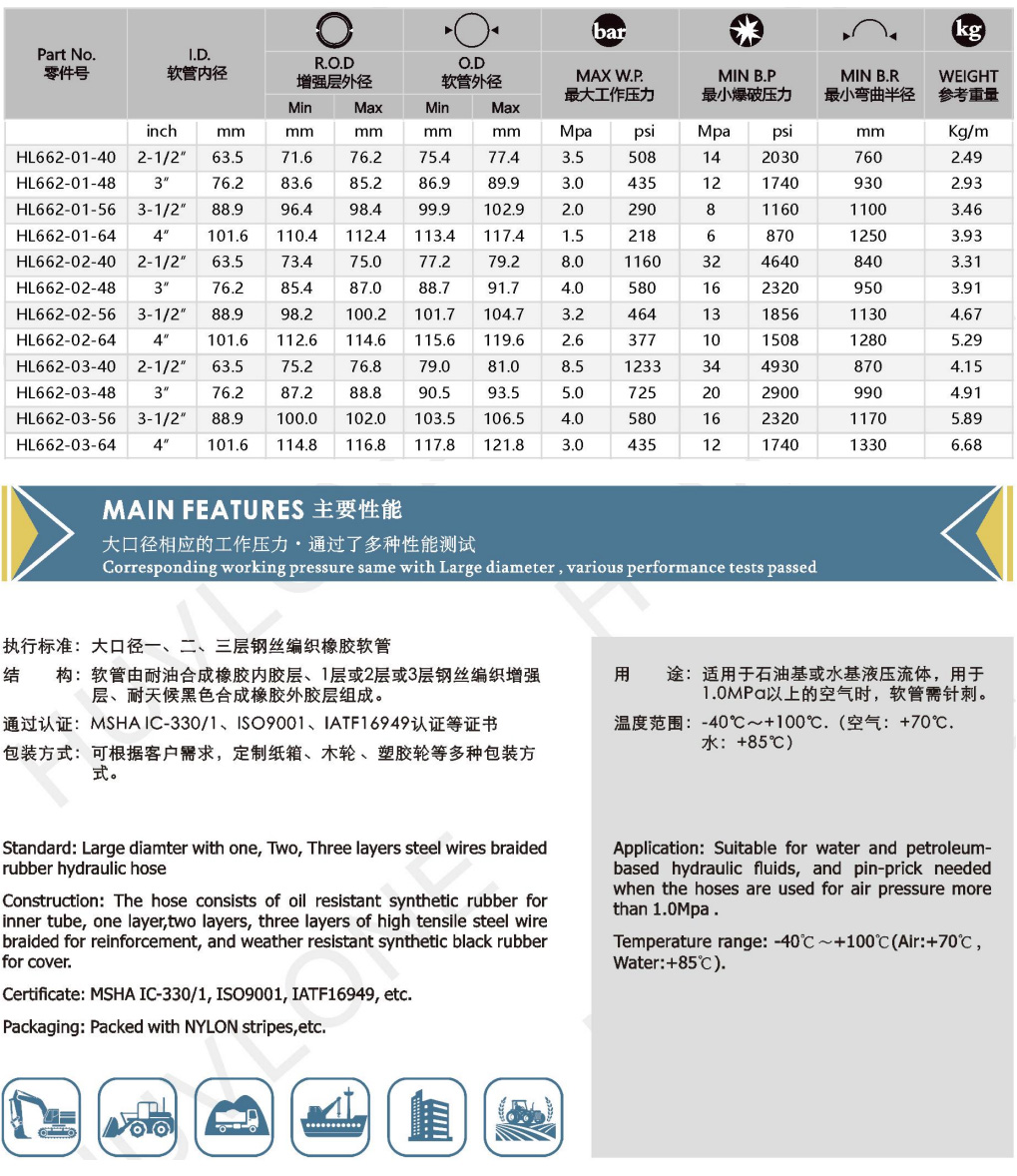 產品用途:適用于石油基或水基液壓流體,用于1.0MPa以上的空氣時,軟管需針刺。