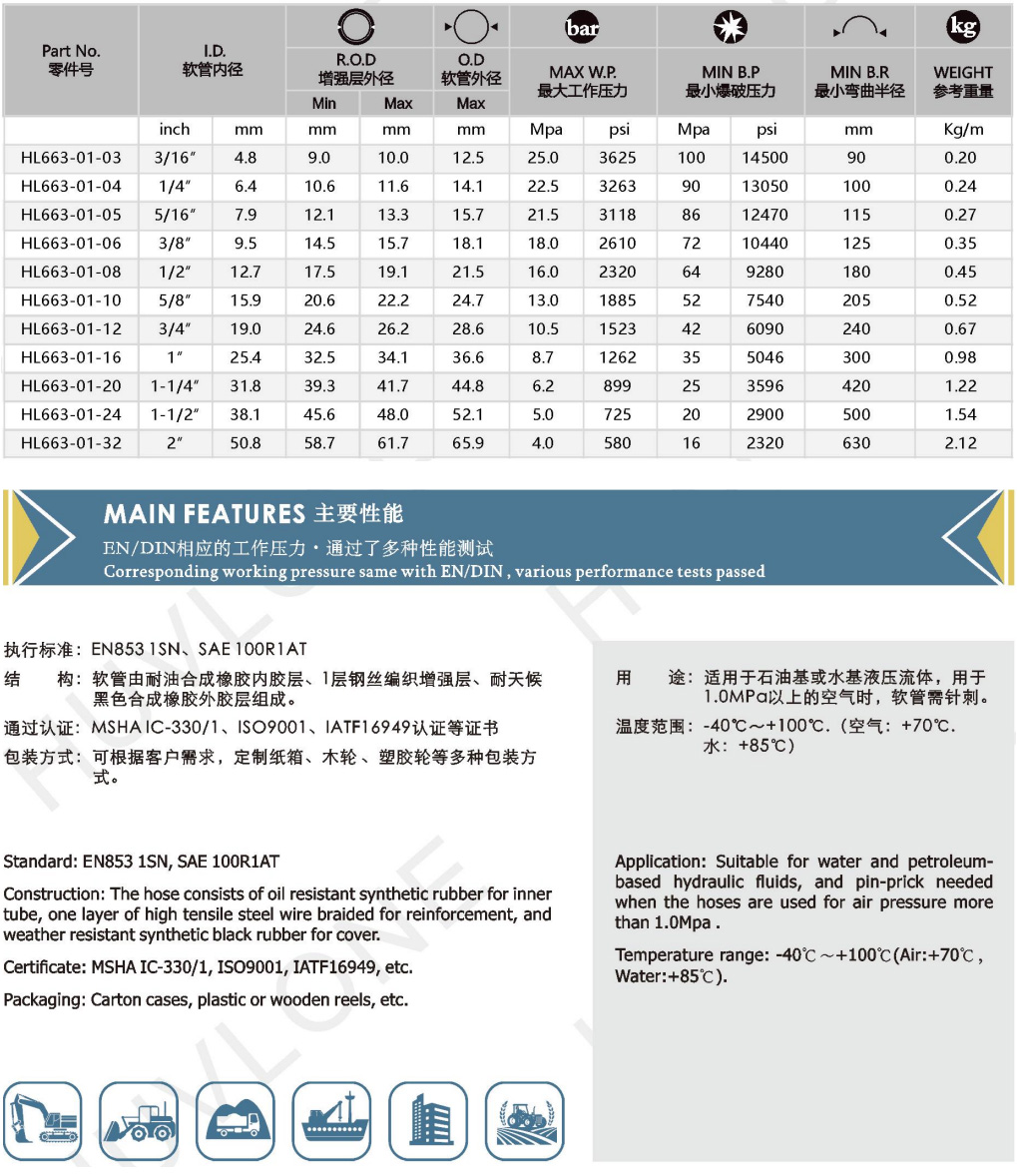產品用途:適用于石油基或水基液壓流體,用于1.0MPa以上的空氣時,軟管需針刺。