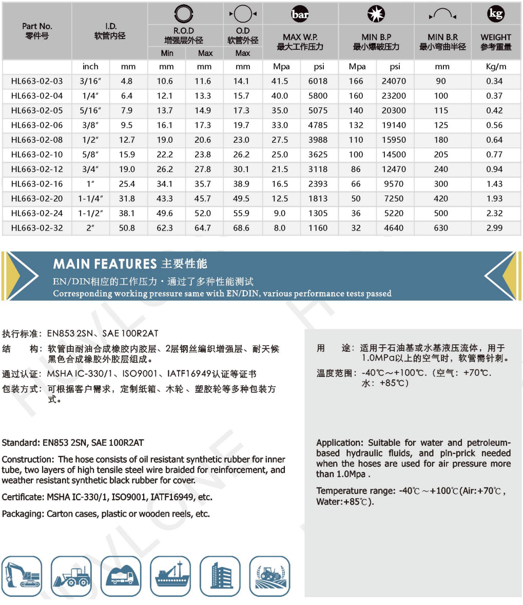 EN853 2SN/SAE100R2AT二層鋼絲編織橡膠軟管