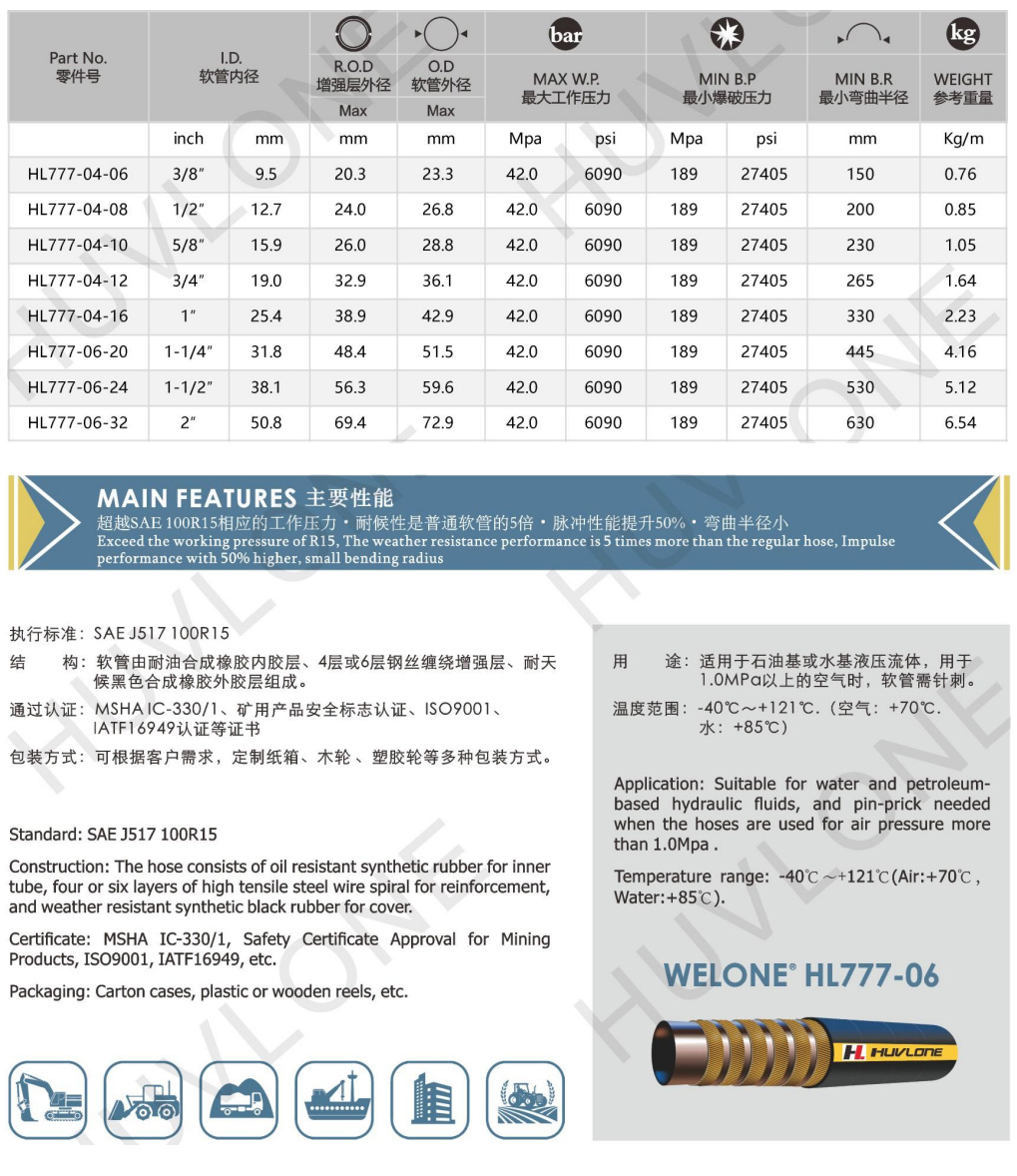 符合/超越SAE J517100R15四層鋼絲纏繞橡膠軟管