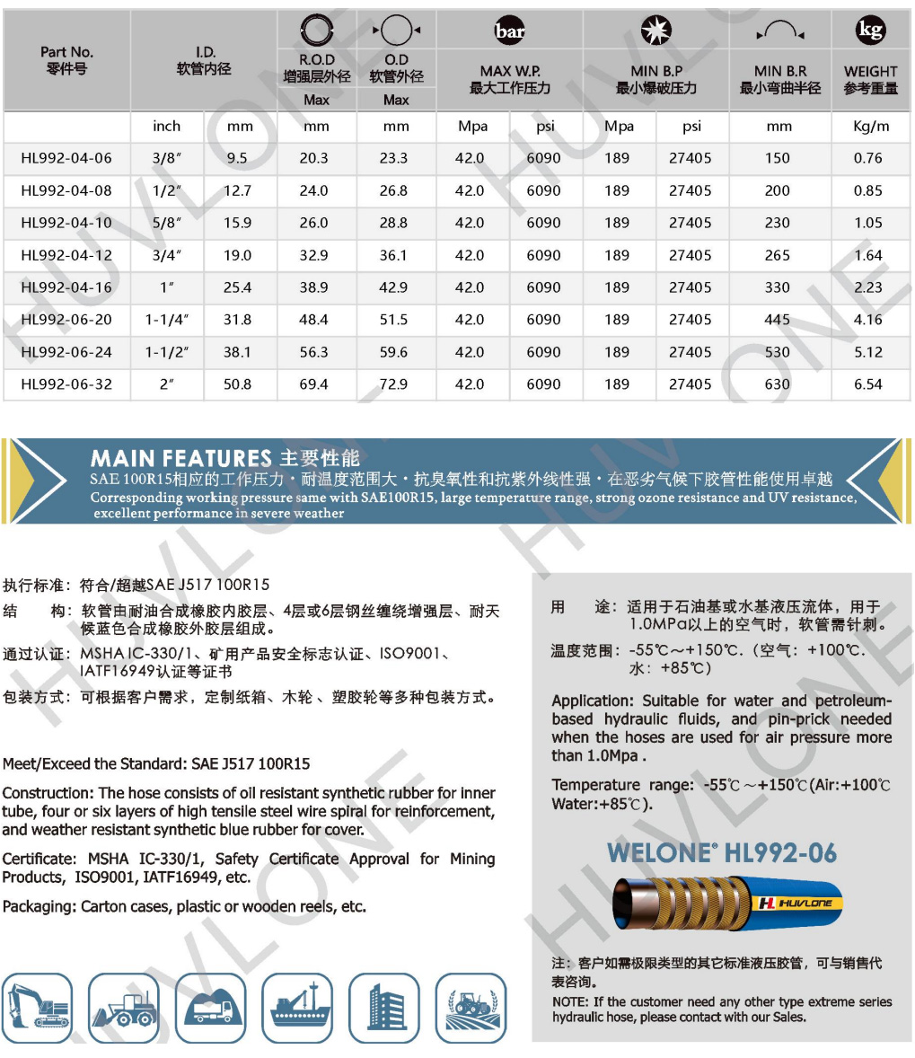 符合/超越SAEJ517 100R15四層鋼絲纏繞耐高低溫橡膠軟管