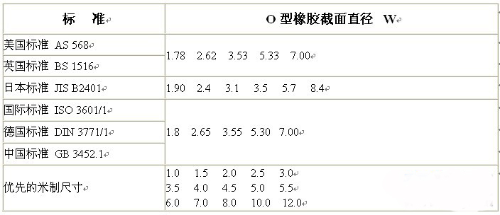 密封間隙的大小與壓力等級、橡膠硬度及O形橡膠密封圈斷面的直徑相關情況,見下表: