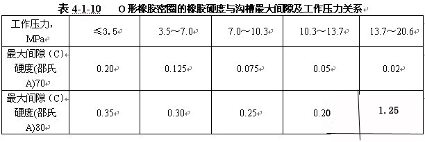 O型圈的硬度與溝槽最大間隙及工作壓力關系