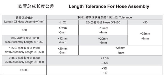 軟管總成長度公差